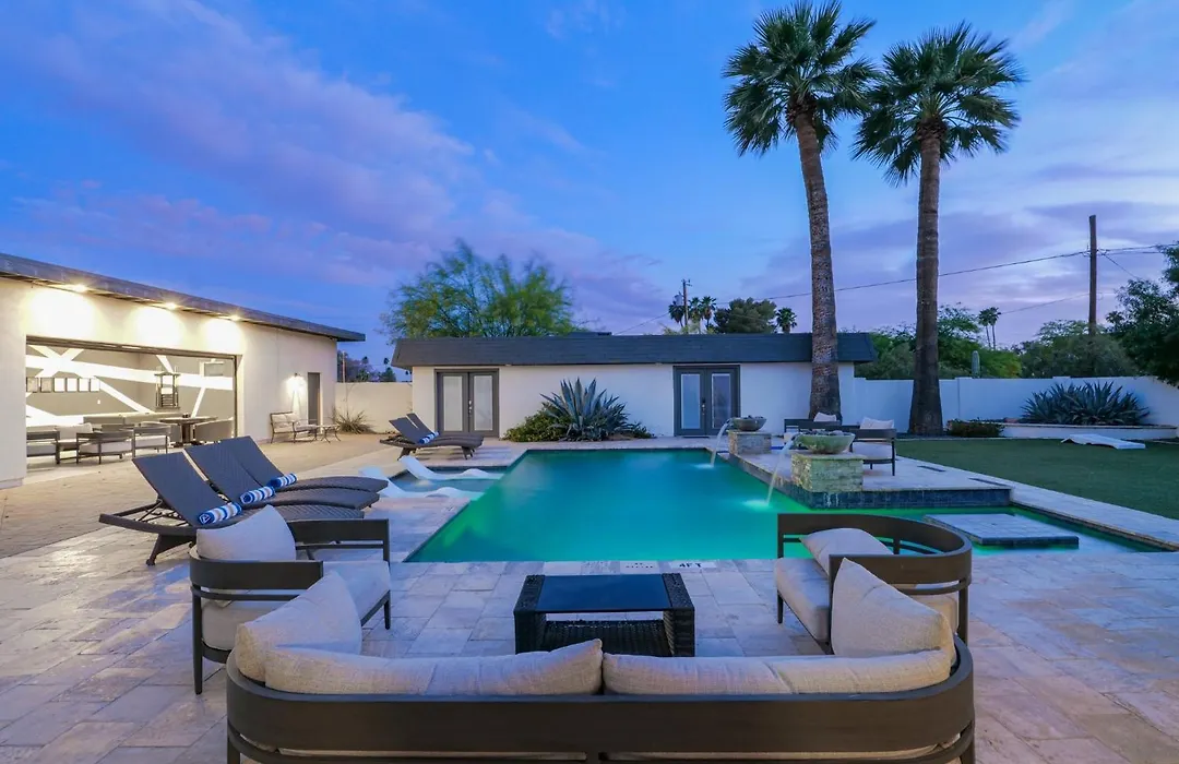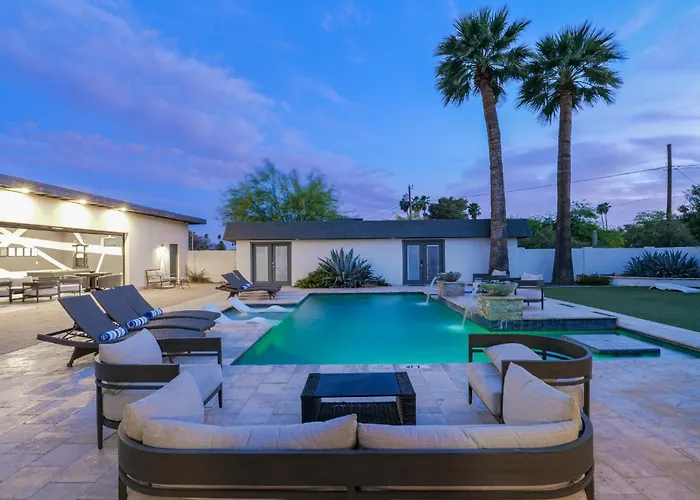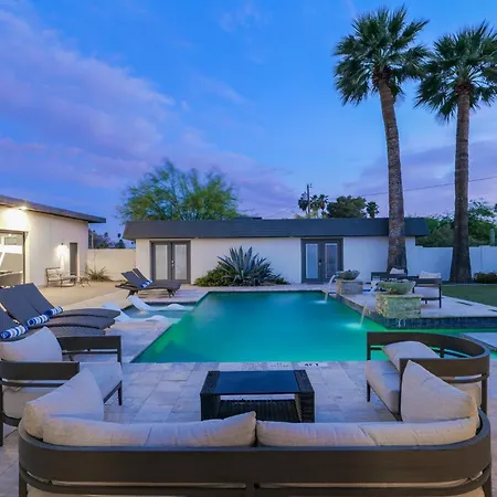 A Sunkist Sanctuary In Scottsdale Vila está localizada no bairro Paradise Valley em Scottsdale a 25 minutos a pé de Cosanti e dispõe de piscina privada, bem como de vistas para o jardim. Os hóspedes podem desfrutar de caminhada, ciclismo e bicicletas nesta casa de férias, localizada a uma distância de 3.1 km de Cactus Park.